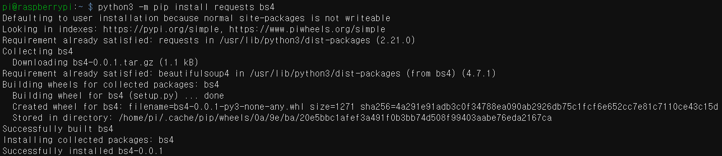 2. "python3 -m pip install requests bs4"를 통하여 모듈을 설치합니다.