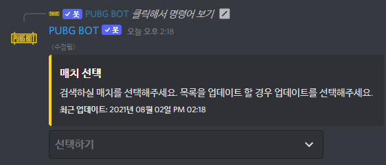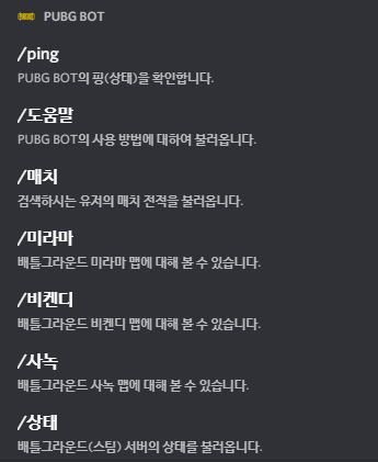 PUBG BOT이 드디어 빗금 명령어을 지원 합니다.