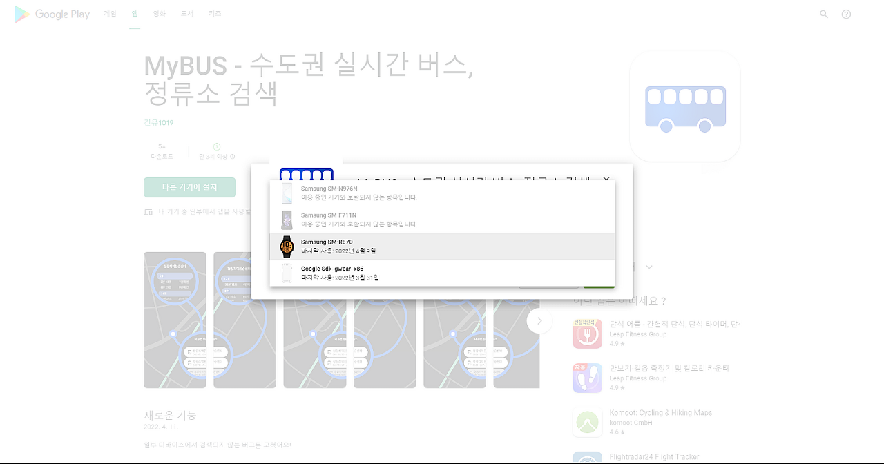 플레이스토어 버그로 인하여 조건에 충족한 웨어러블 디바이스에서 페어링된 모바일 디바이스으로 호환성 버그로 다운로드 버튼이 비활성화되는 문제가 계속 발생하고 있습니다.