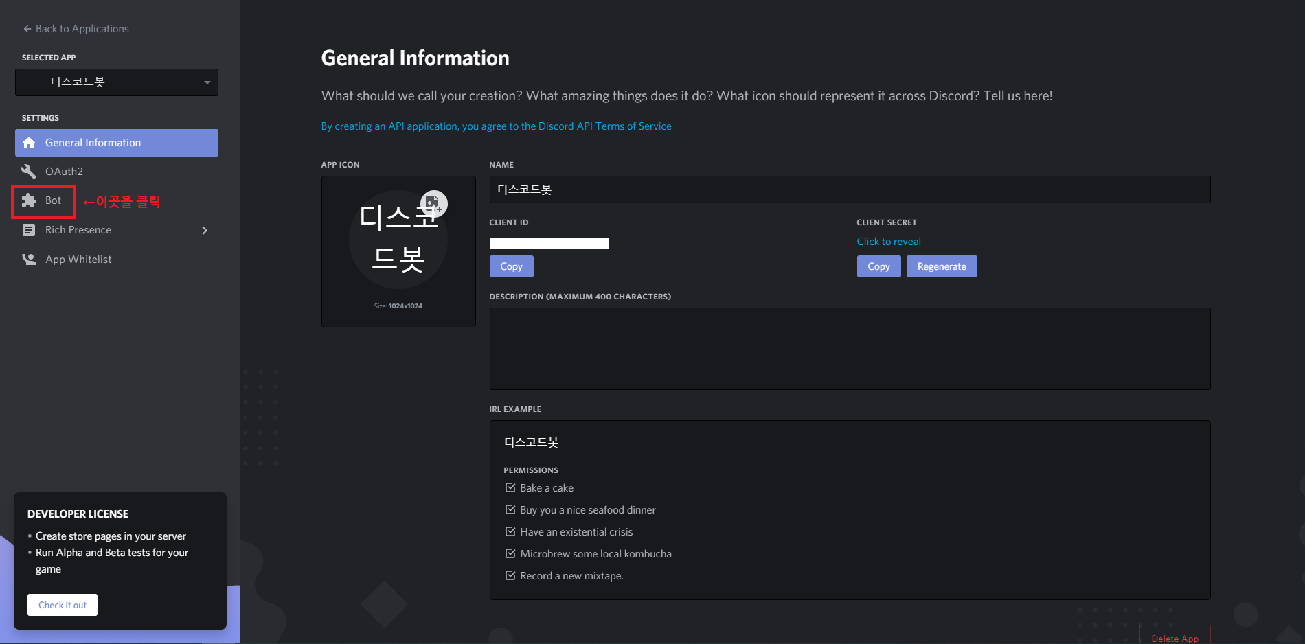 디스코드 봇 계정을 만들기