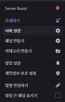 일단 이곳에서 서버 설정에 들어갑니다. 그리고 역할 창을 클릭합니다.