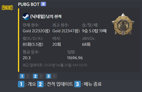 2020/06/10 - [개발 소식지/PUBG-BOT] - PUBG BOT [OBT v0.2] 개발근황(#1)