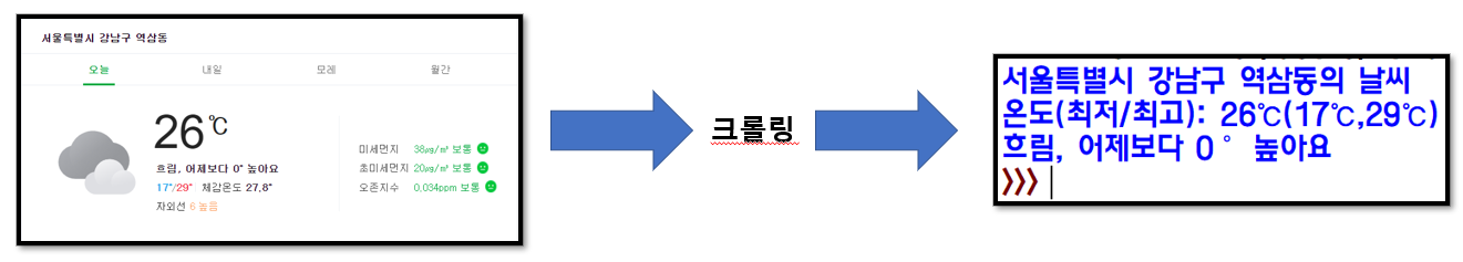 우선 크롤링이란것에 대해 알아야 할 것 같습니다. 크롤링이란 웹페이지에서 특정한 데이터를 사용자에게 보여주는 것입니다. 크롤링을 하는 프로그램은 "크롤러"라고 부르기도 합니다.