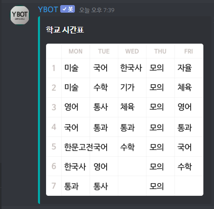시간표 기능이 추가되었습니다. YBOT을 통하여 시간표도 쉽고 간편하게 알아보세요!