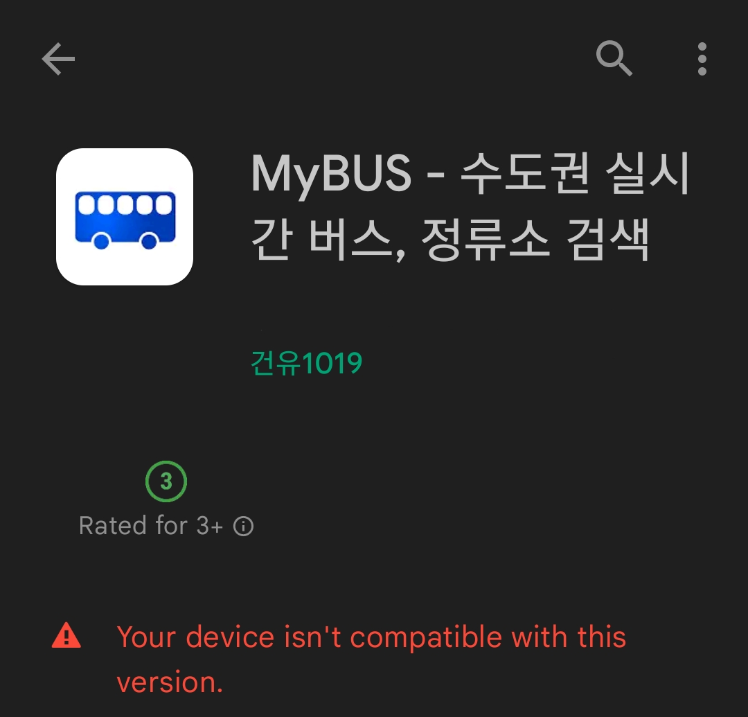 플레이스토어 버그로 인하여 조건에 충족한 웨어러블 디바이스에서 페어링된 모바일 디바이스으로 호환성 버그로 다운로드 버튼이 비활성화되는 문제가 계속 발생하고 있습니다.