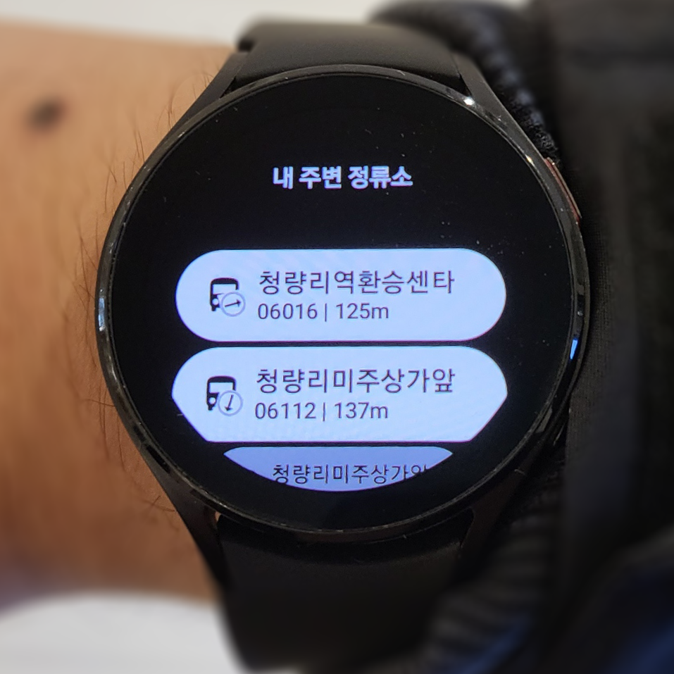 갤럭시워치를 통하여 대중교통 정보를 보다 쉽게 알아볼 수 있습니다.
